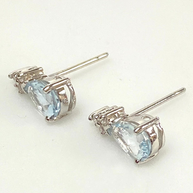 v130 Vintage 10K White Gold Teardrop Shaped Aquamarine Diamonds Earrings Pierced