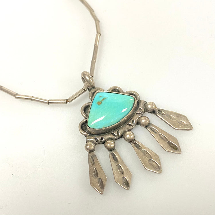 v179 Vintage Turquoise Sterling Silver Hand Made Navajo Art Pendant Necklace