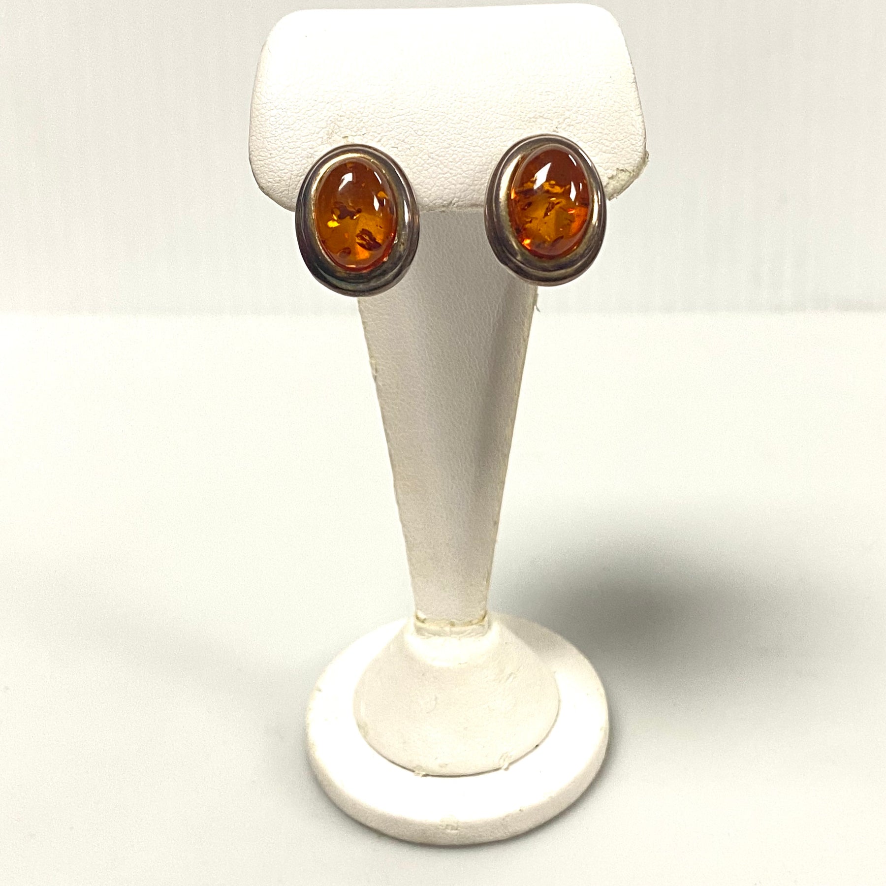 v202 Vintage Sterling Silver 925Amber Earrings and Pendant/Brooch/Pin Set of 3