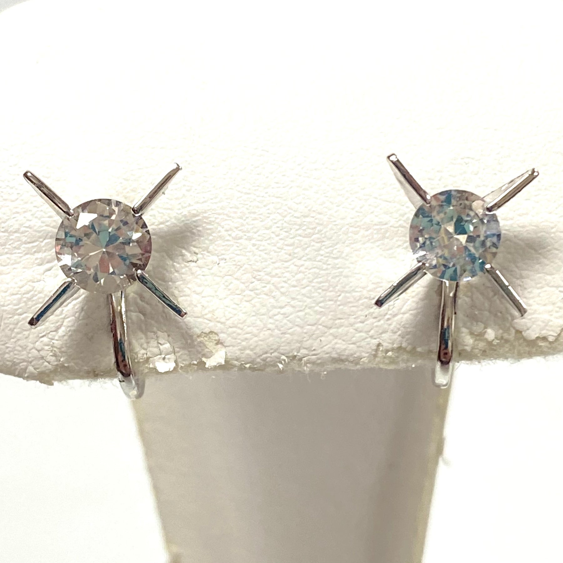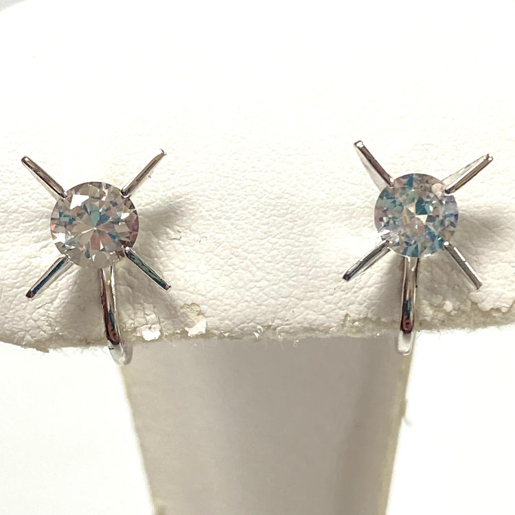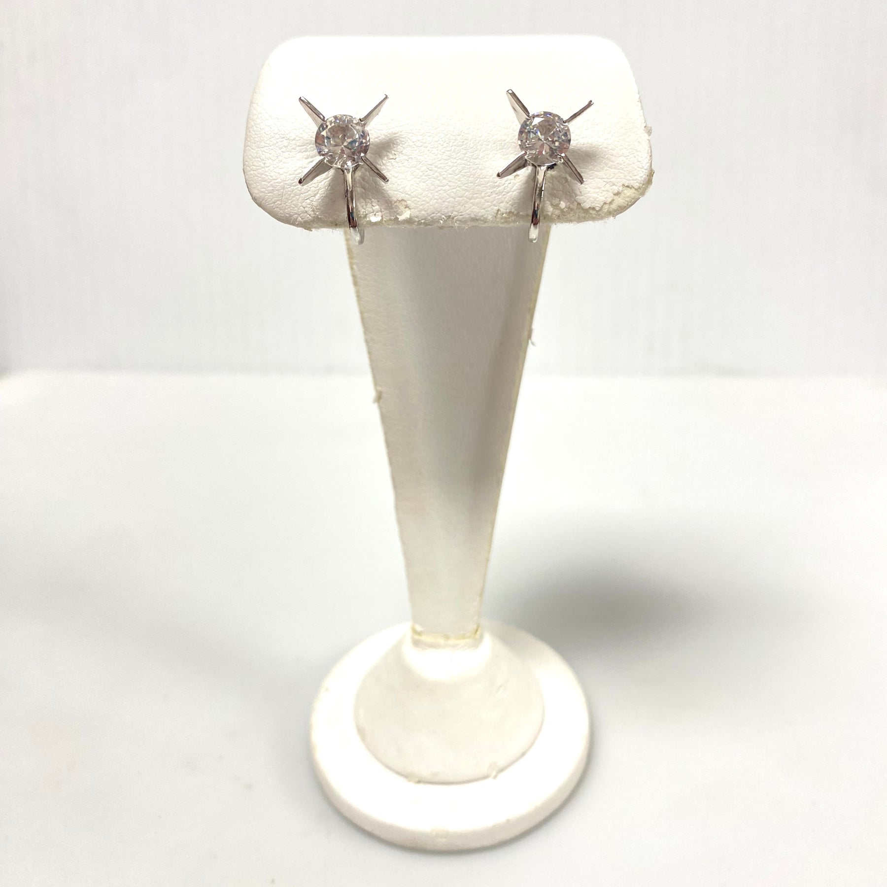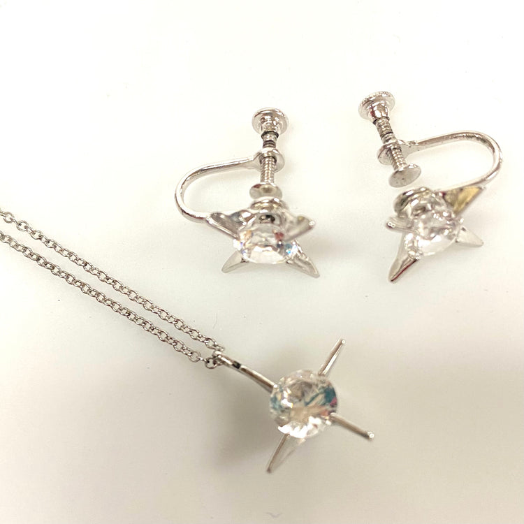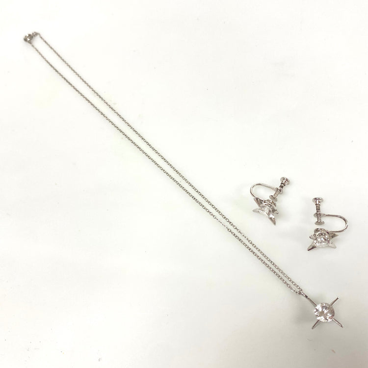 v205 Vintage Sterling Silver 925 White Stone Earrings Pendant 15" Necklace Set