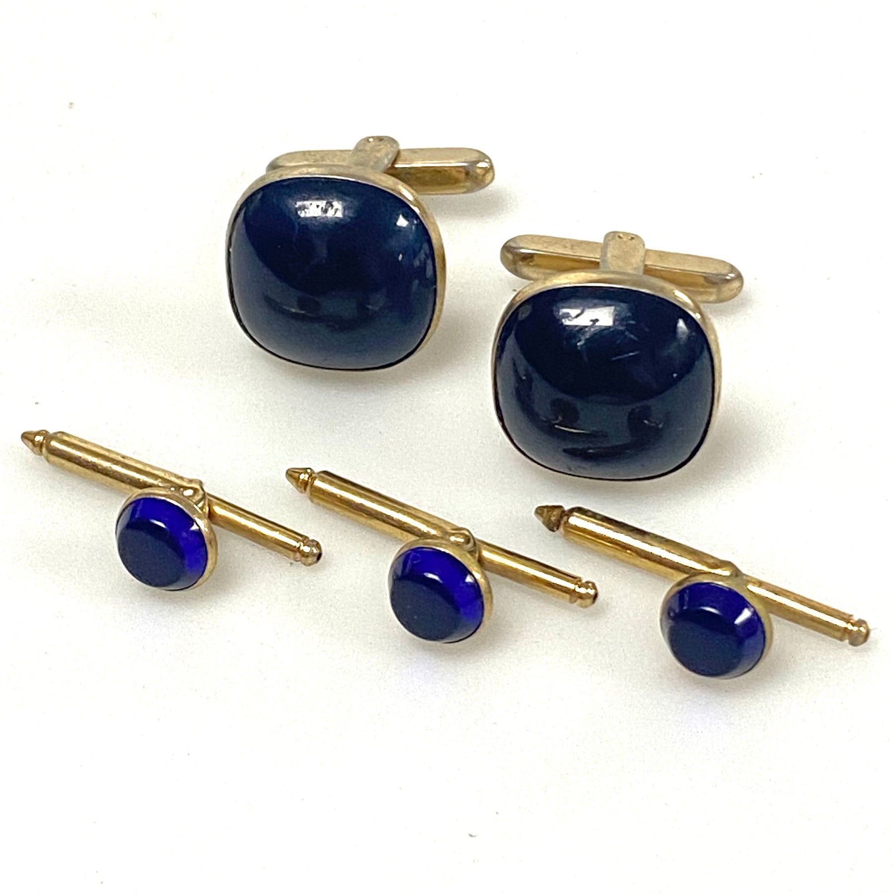 v221 Vintage Gold Tone & Cobalt Blue Men's Cuff links and 3 Hickock Shirt Studs