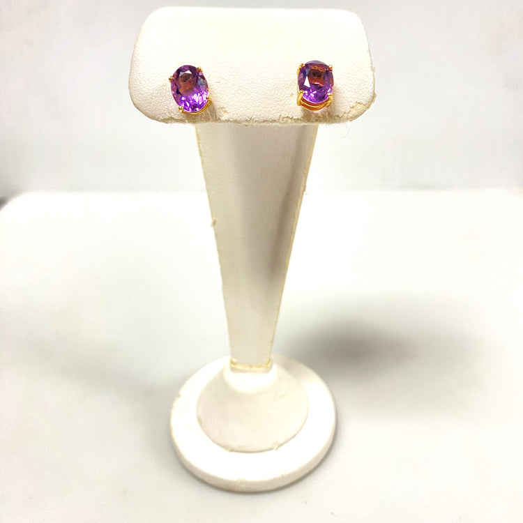 v224 Vintage 14K Yellow Gold Lilac Amethyst Gemstone Stud Earrings Pierced