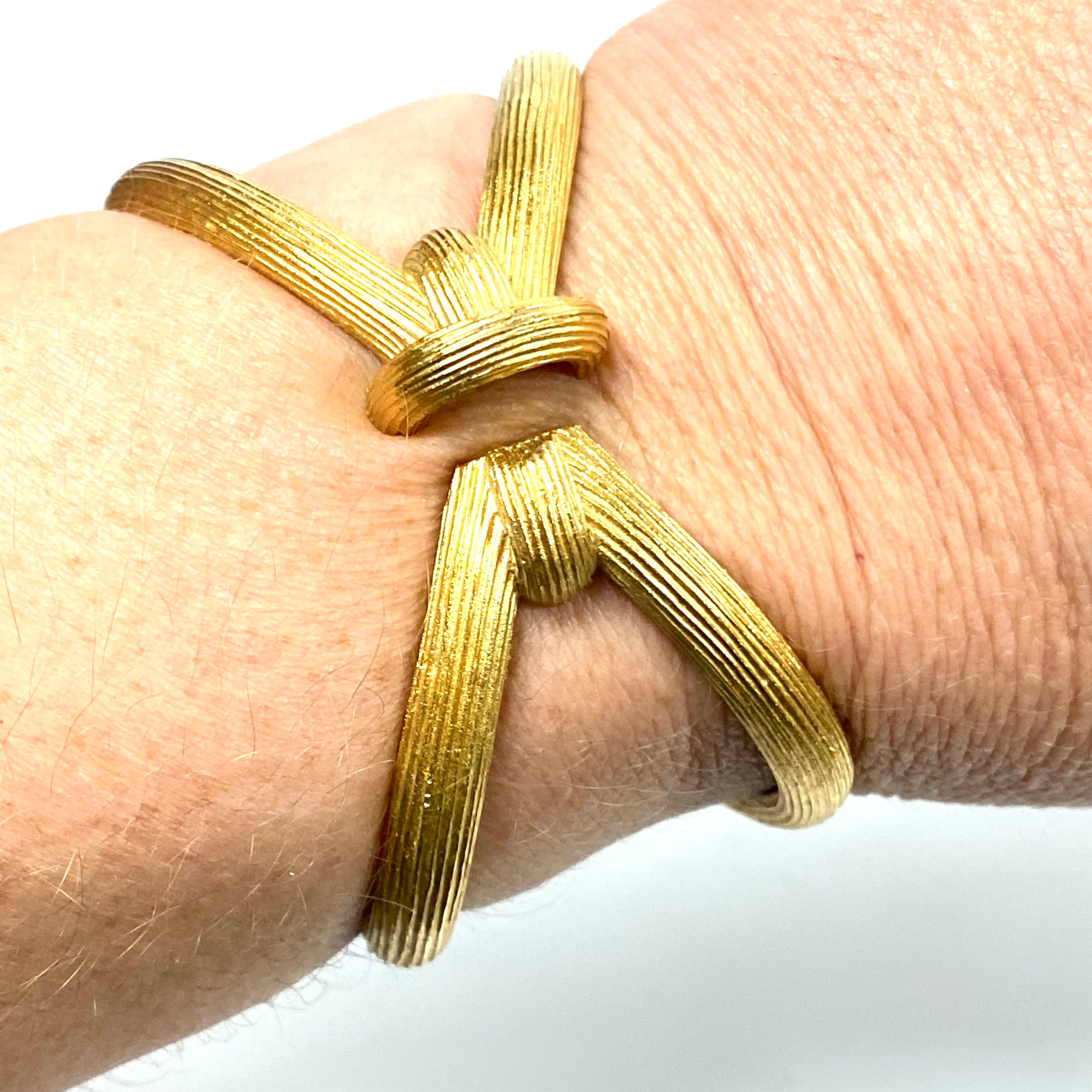 v232 Vintage Bangle Bracelet Crown Trifari Criss Cross Clamper Textured Matte Gold Tone Hinged