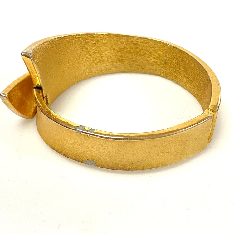 v233 Vintage Crown Trifari Brushed &Shiny Gold Tone Clamper Bangle Bracelet 7.5"