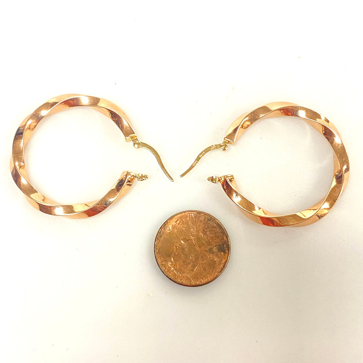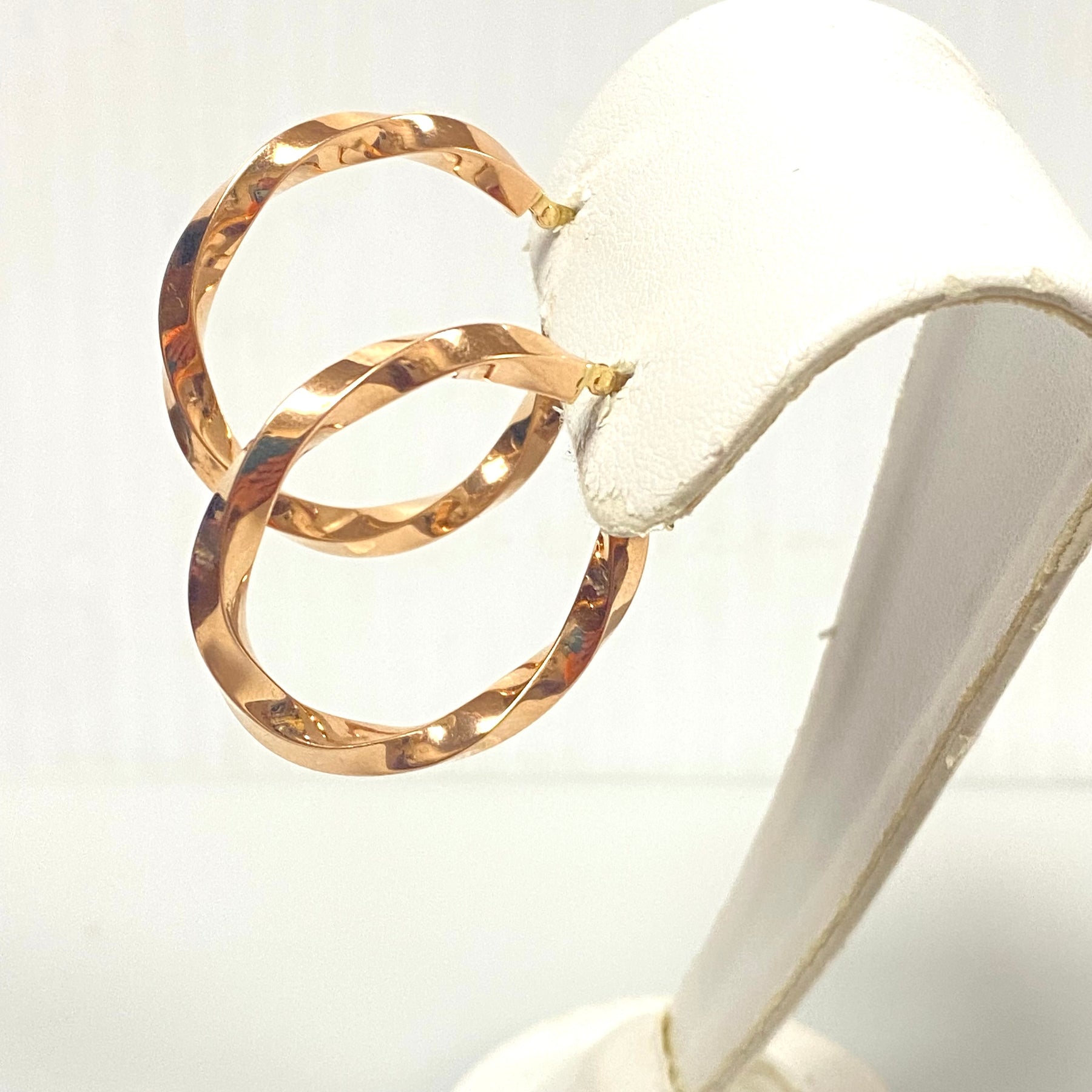 v249 Vintage Classic 14K Rose Gold Pierced Hollow Twisted Hoop Earrings