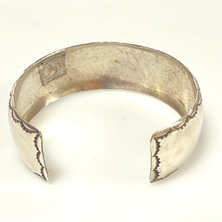 * Vintage Sterling Silver Cuff Native American Bracelet. 5.75" Long, 20mm wide.