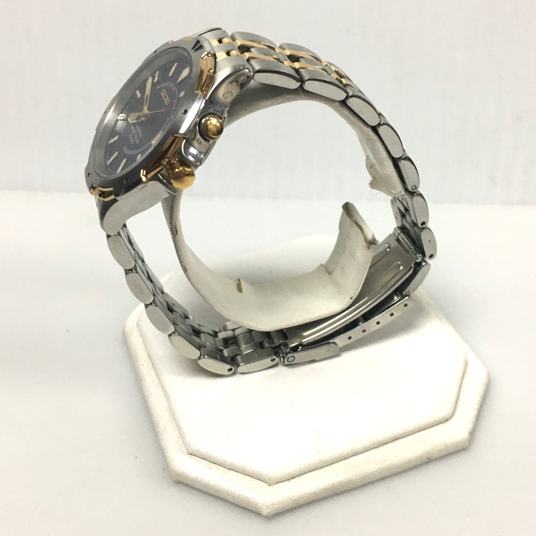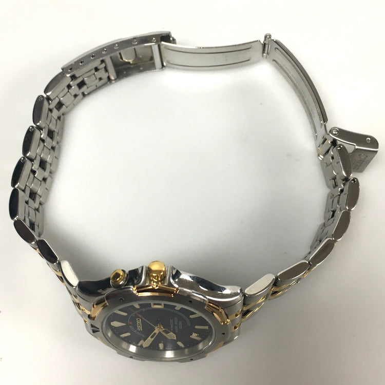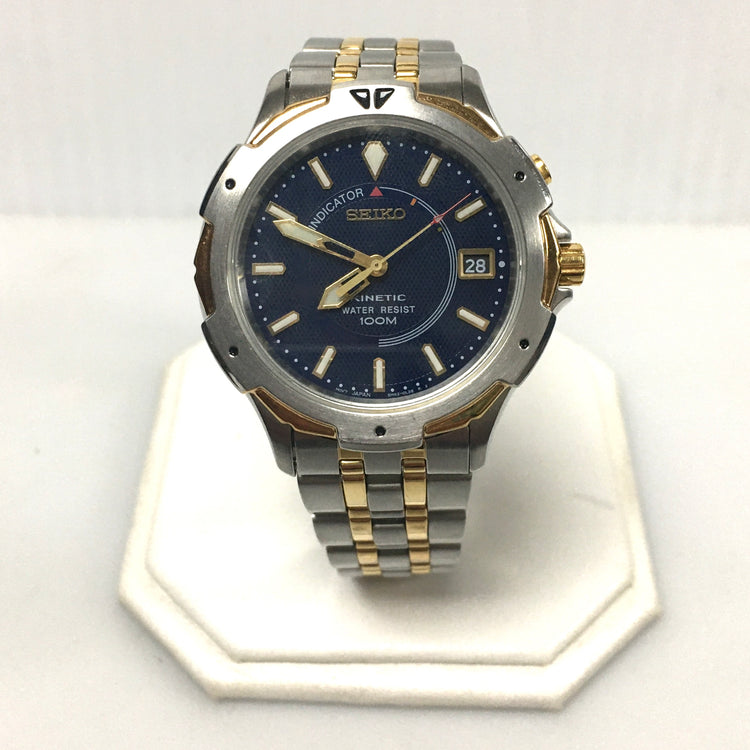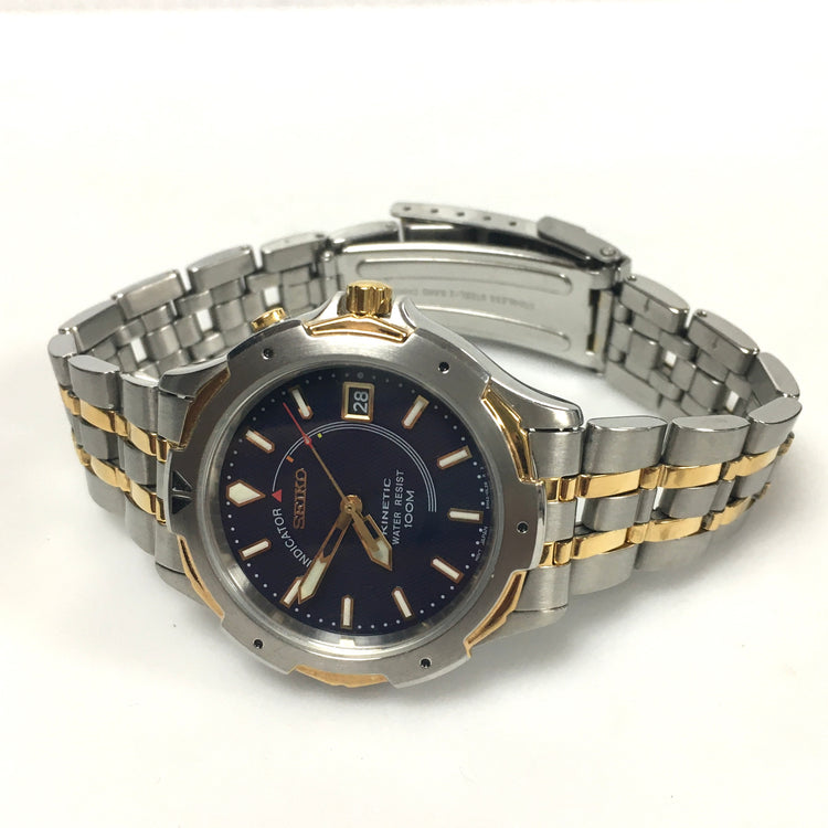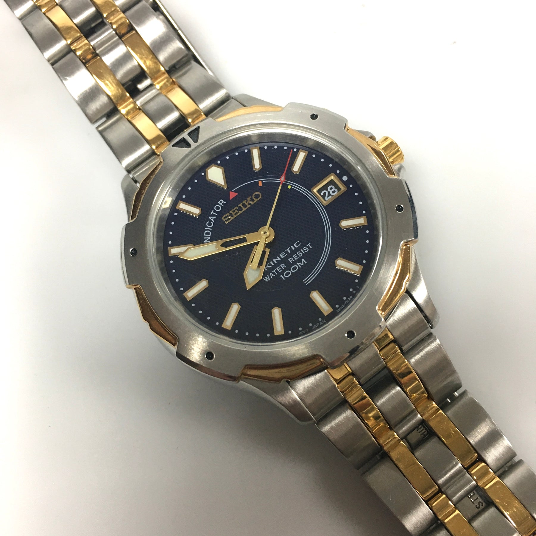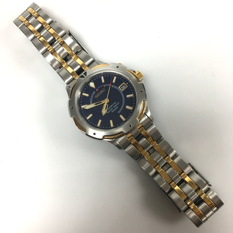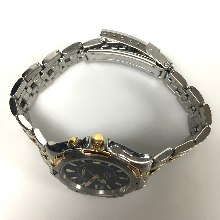 Seiko Kinetic Wrist Watch. Case and Band - Stainless Steel/Base metal gold and silver tone.