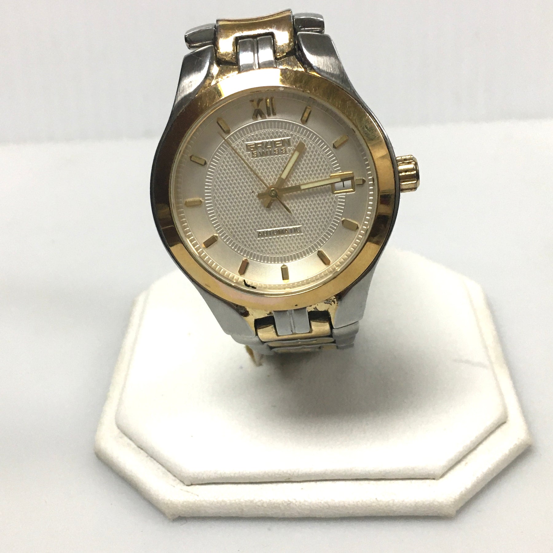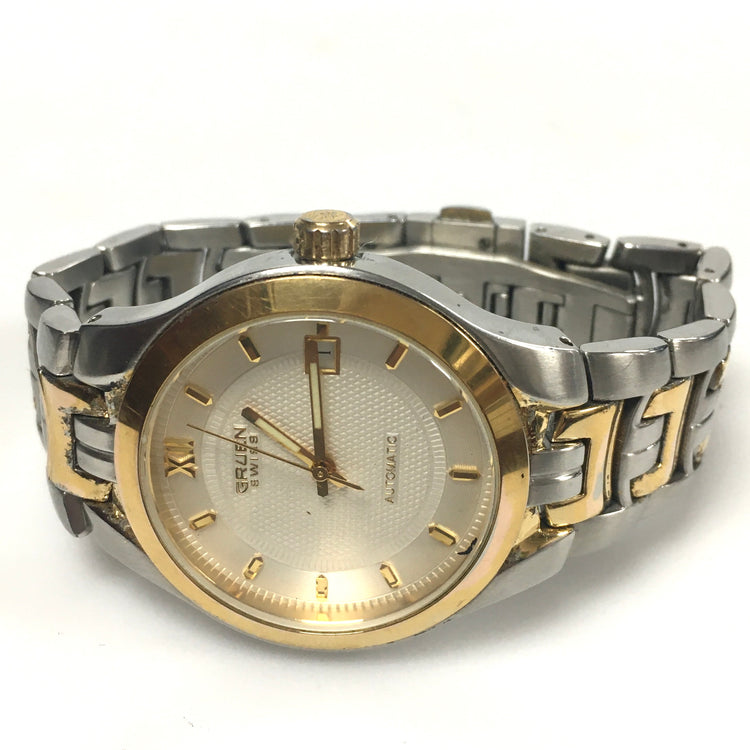 Vintage Gruen Automatic Wrist Watch. Case and Band - Stainless Steel gold and silver tone.