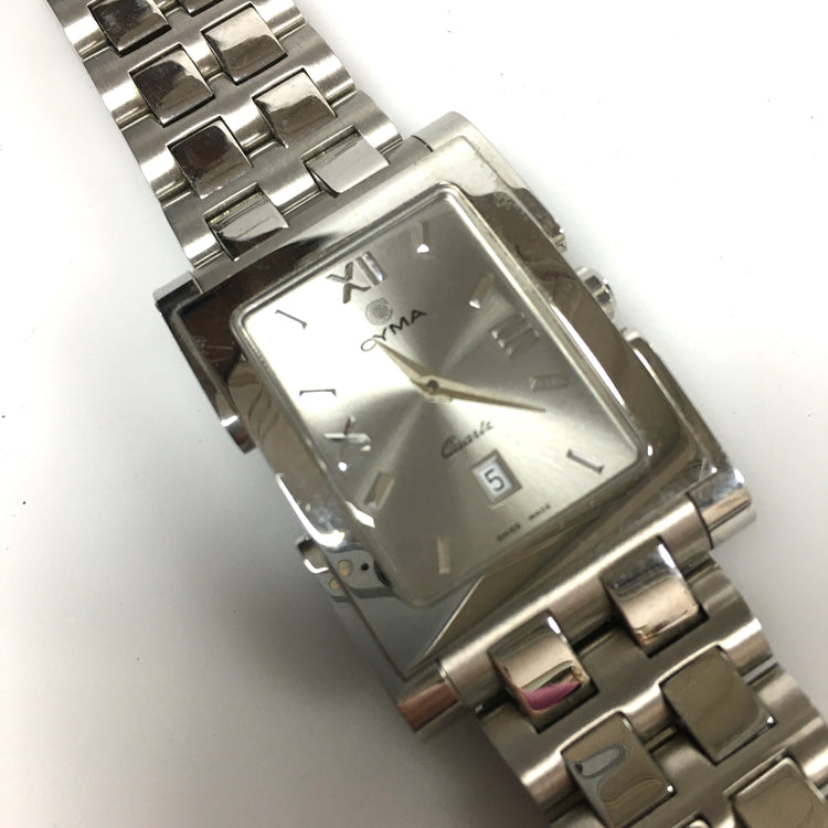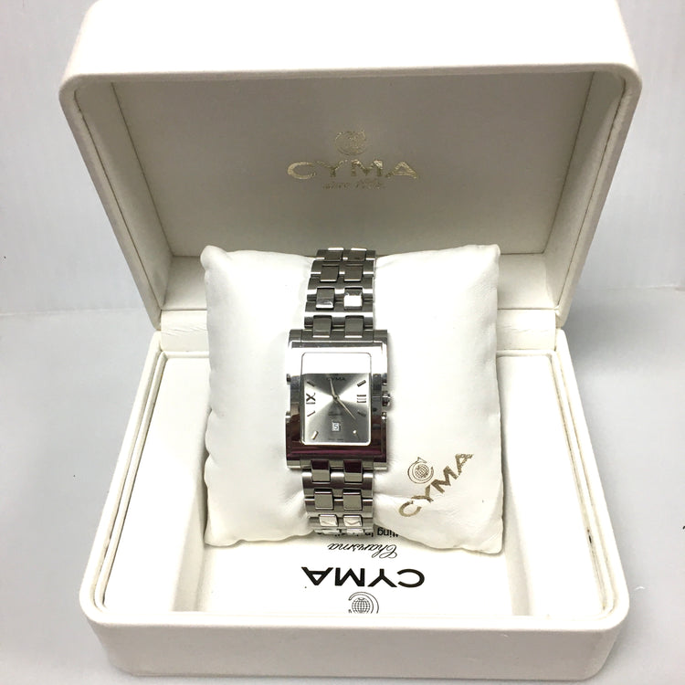 v308 Vintage CYMA Quartz Swiss Made Silver Tone Stainless Steel Wrist Watch