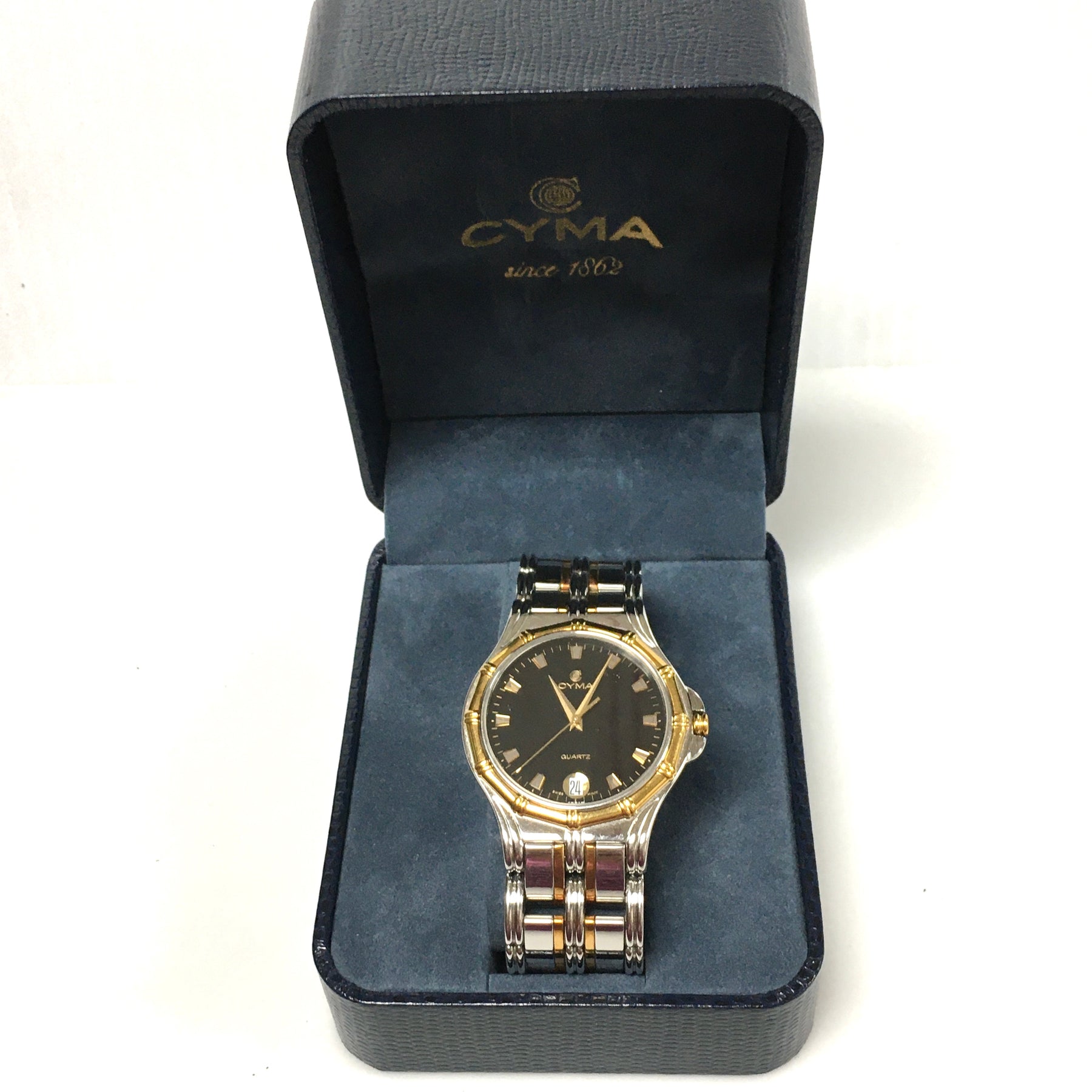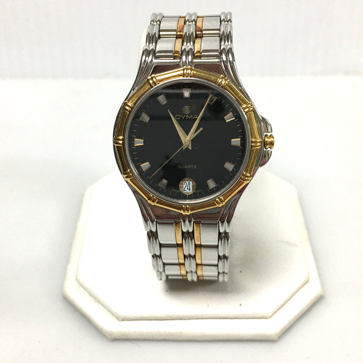 v310 Vintage CYMA Quartz Swiss Made Stainless Steel & 18K Gold Bezel Wrist Watch
