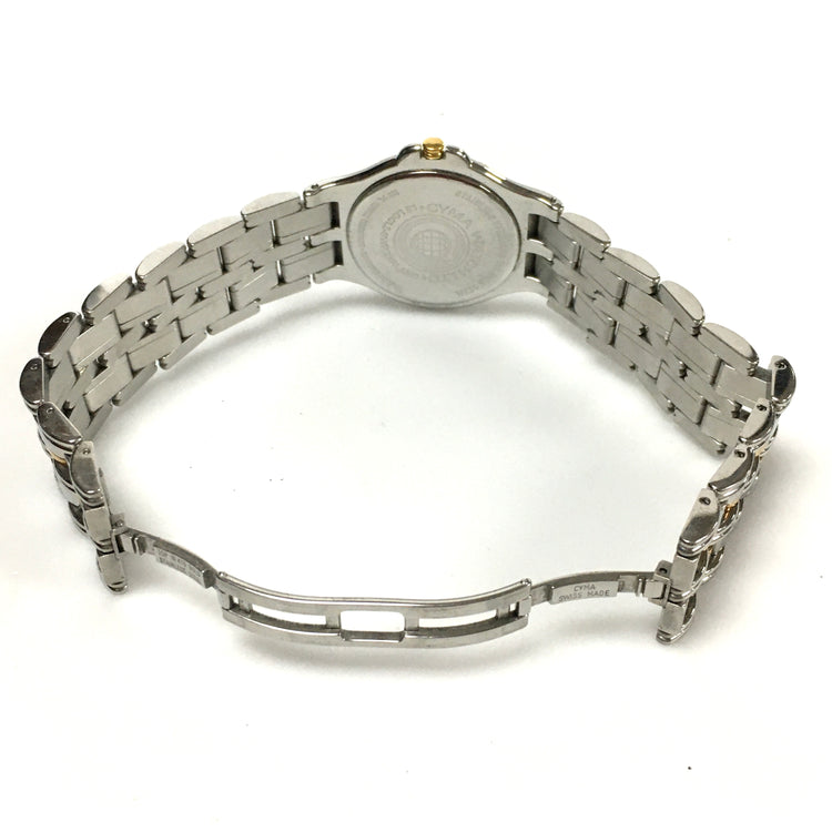CYMA Wrist Watch. Silver/Gold Two-Tone metal. Stainless steel band, 18k Yellow Gold Bezel.