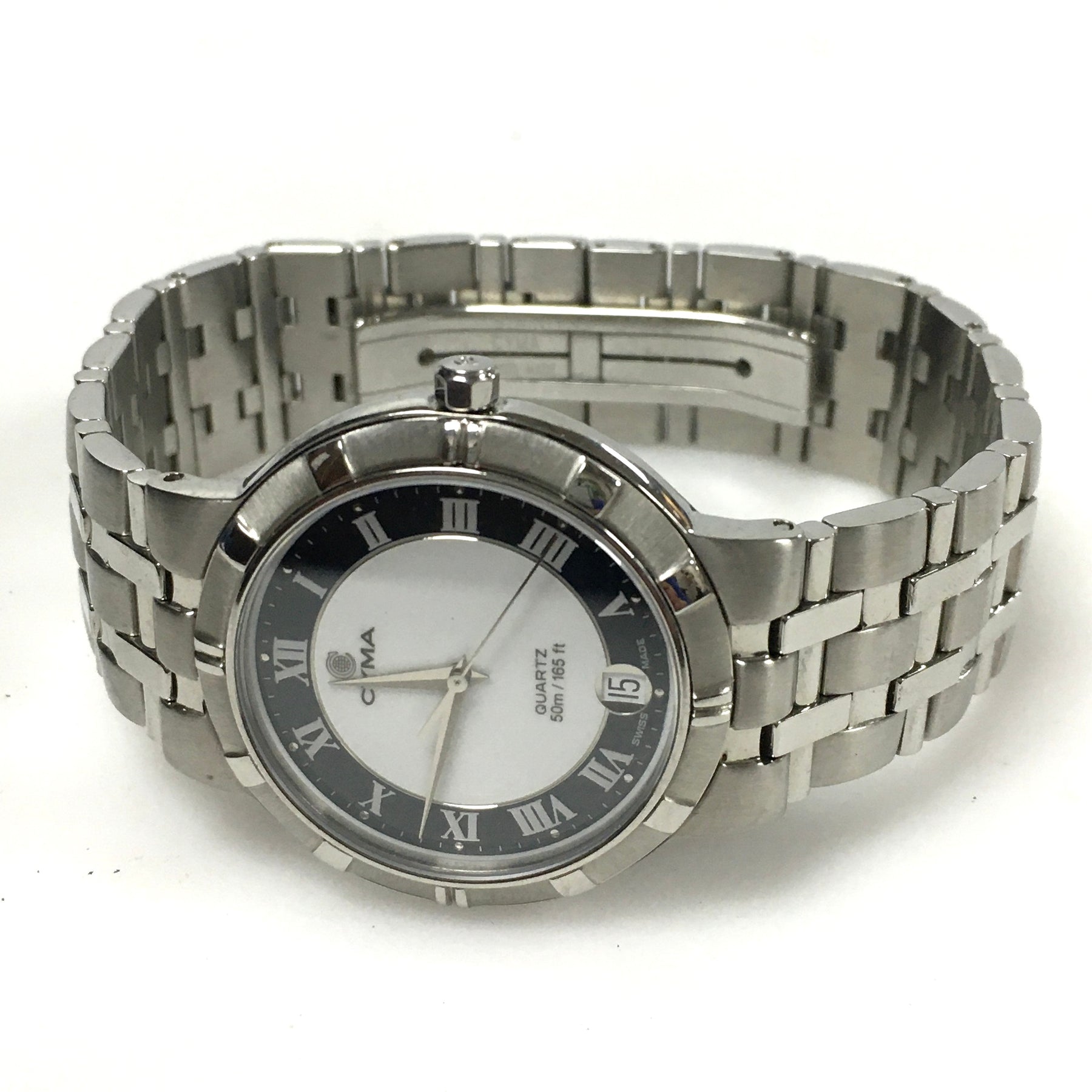 CYMA Wrist Watch. Silver Tone. Stainless steel. Swiss Made Quartz. Sapphire Crystal. Comes with original Display/Storage Box. Case 34mm in diameter, 6mm thick. Fits up to 9" Wrist.