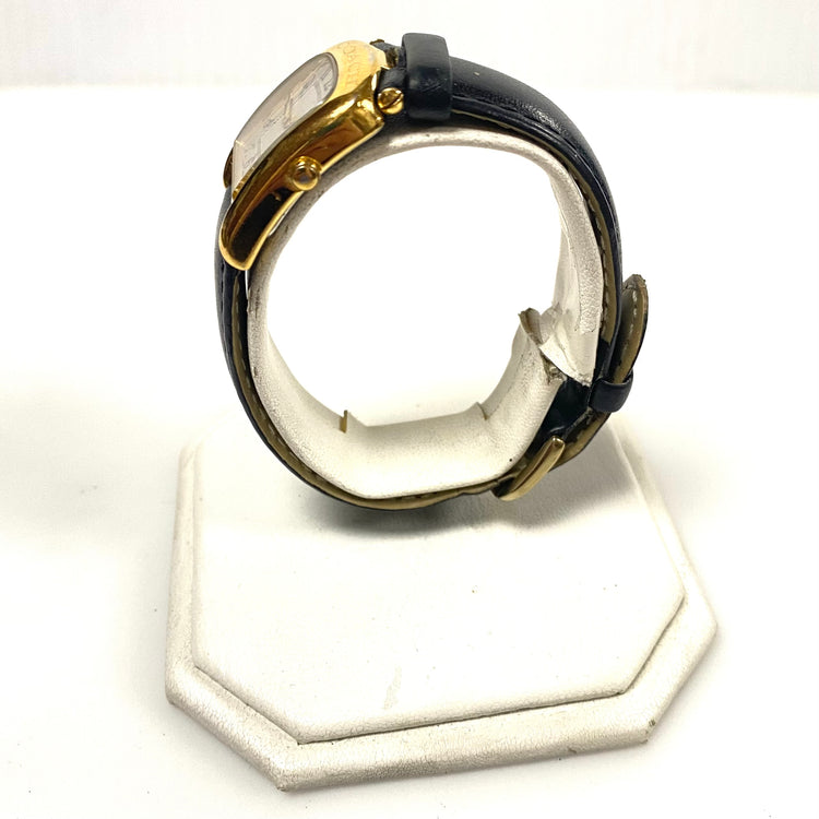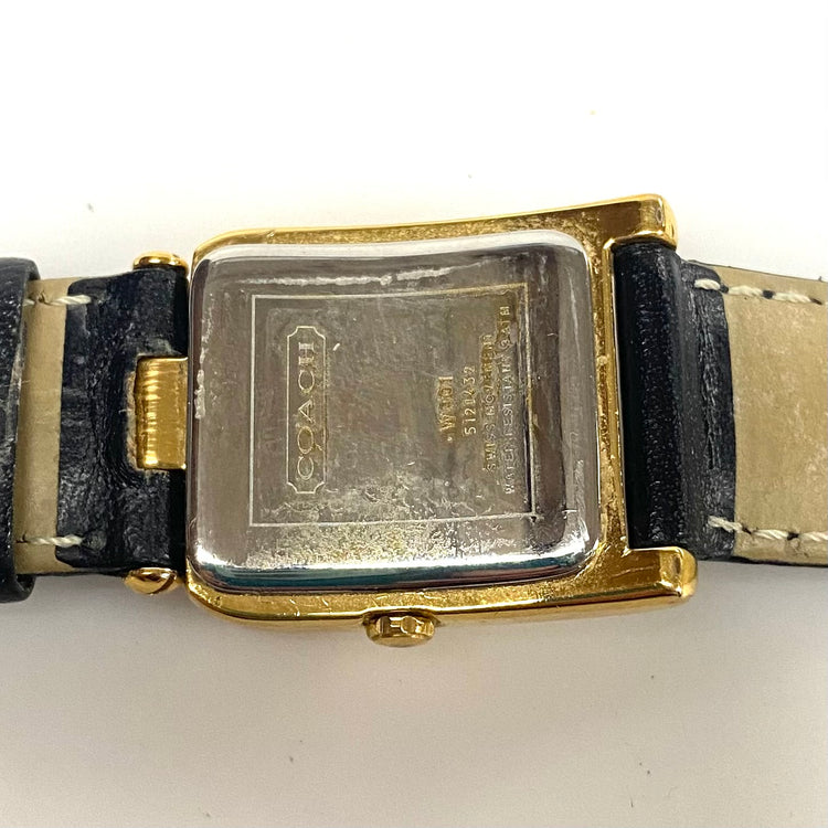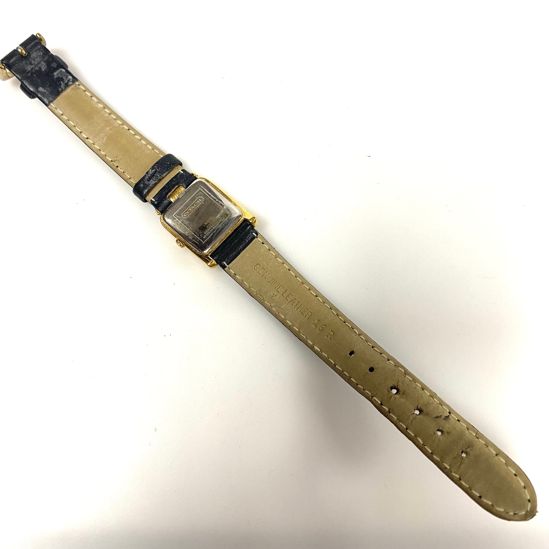 v480 Ladies Coach 19mm Gold Plated Watch Genuine Black Leather Band White Dial