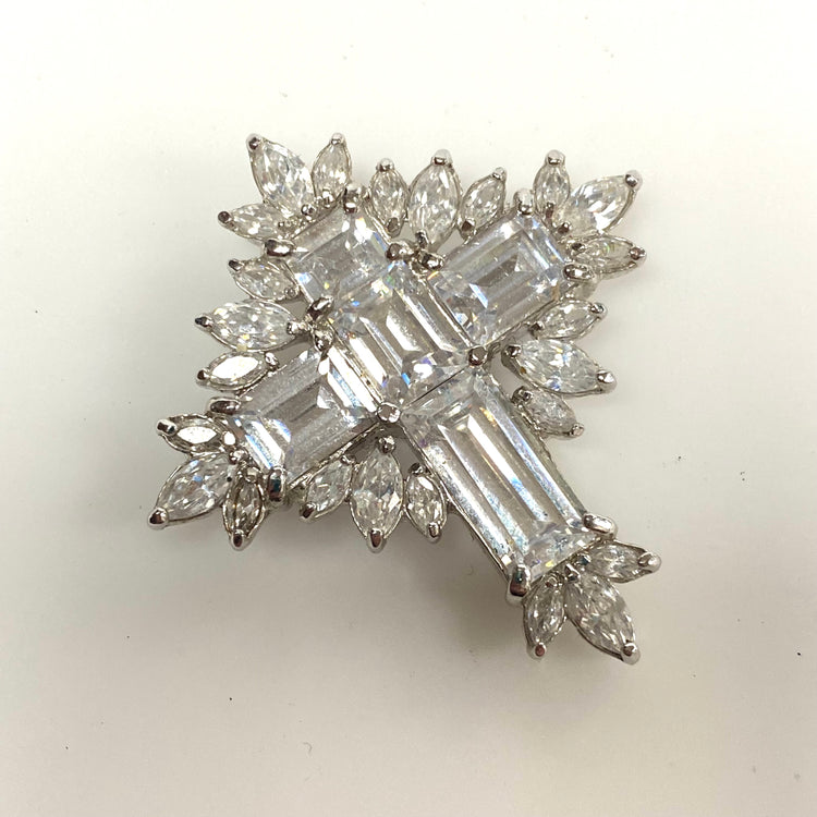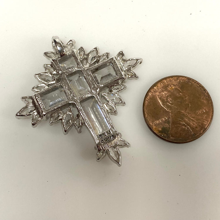 v491 Vintage Zircon Crystal Winter Snowflake Cross Pendant Charm