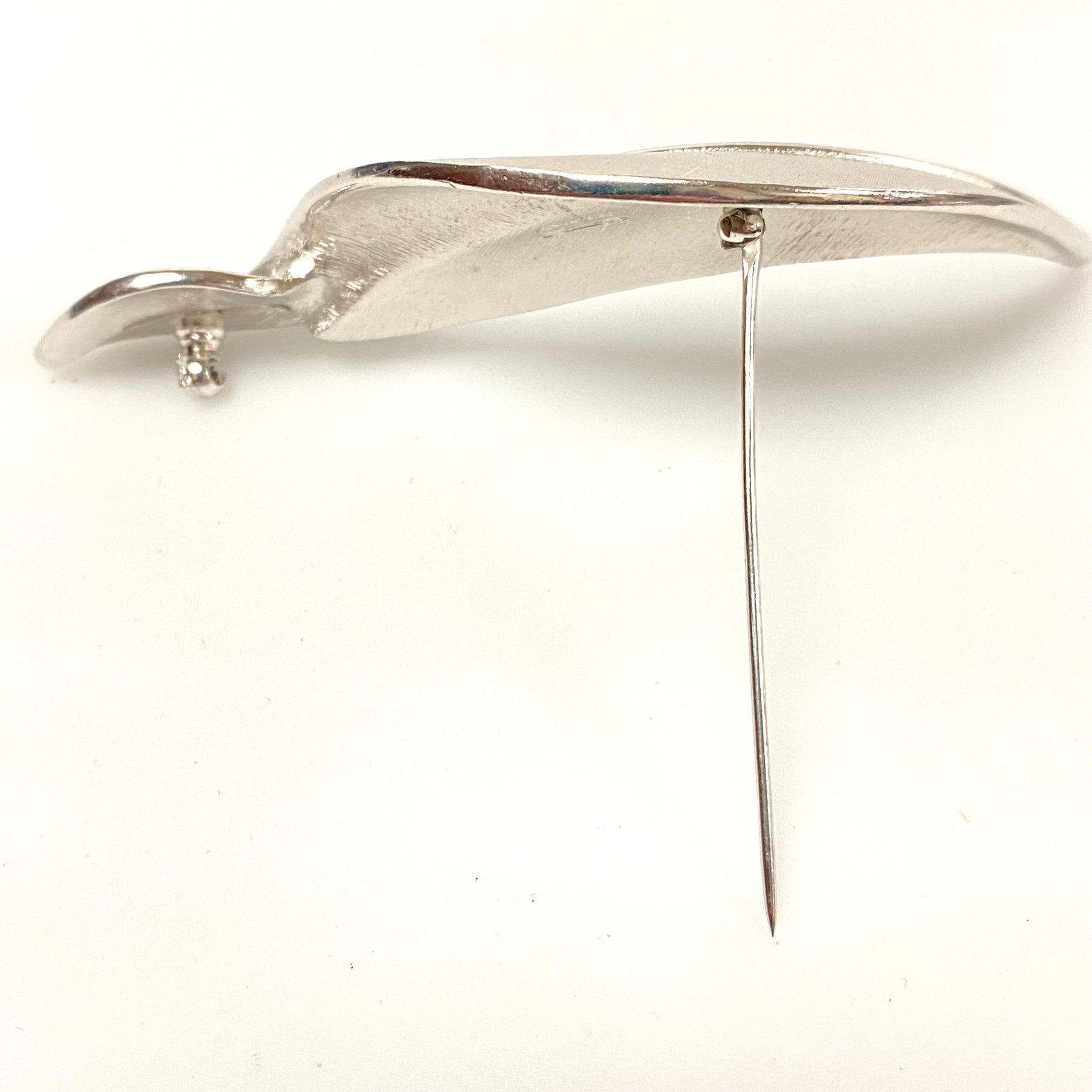 - Vintage Silver Trifari Leaf Brooch. Sterling silver, silver tone, brushed finish.