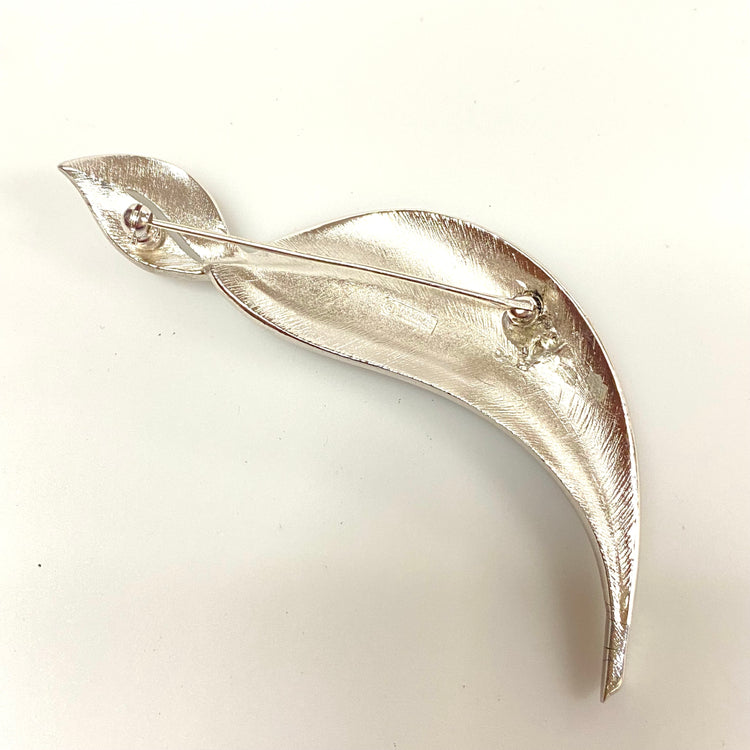 v505 Vintage 1960s Crown Trifari Brushed Metal Silver-Tone Leaf Brooch