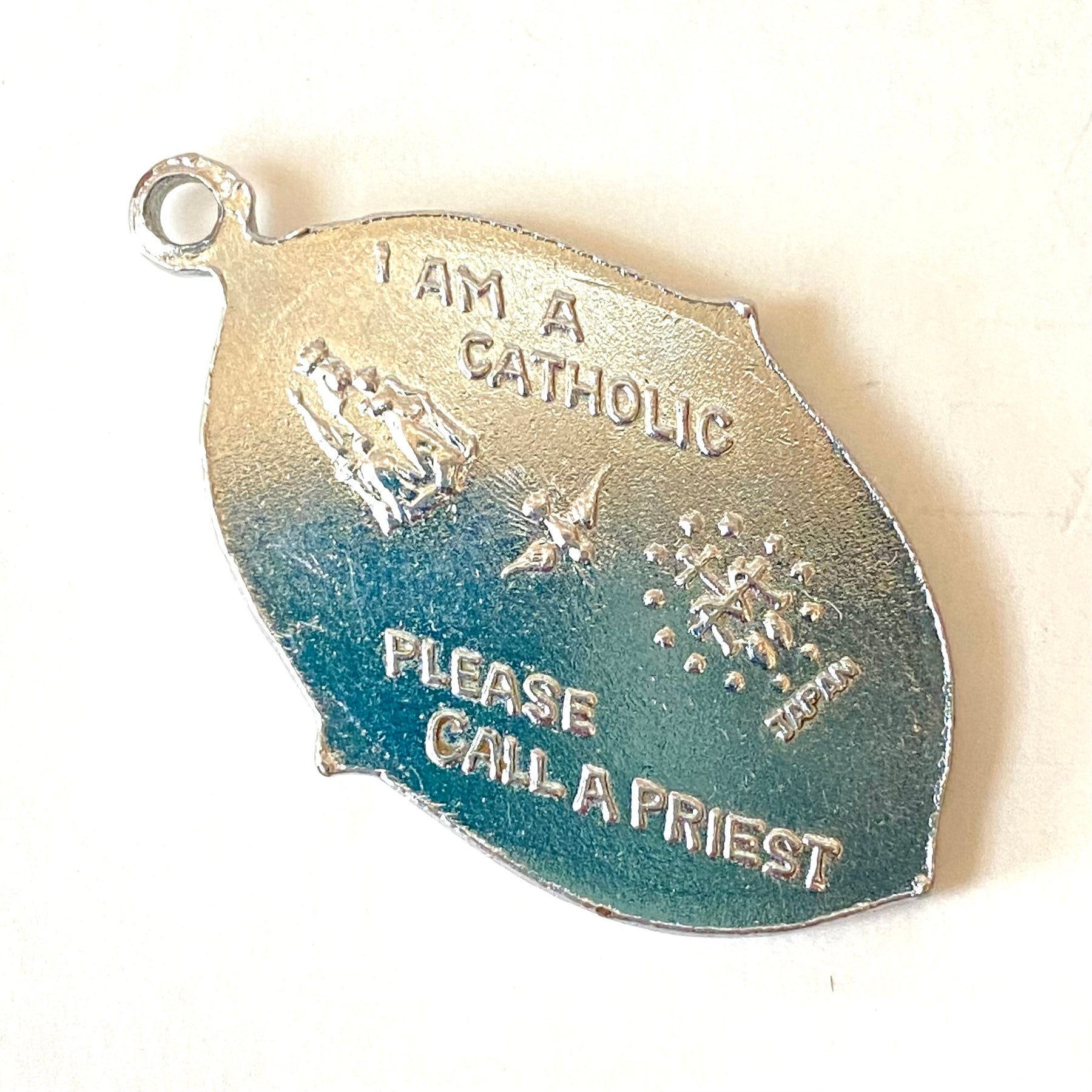 The reverse side reads, "I am a Catholic, please call a priest". Japan