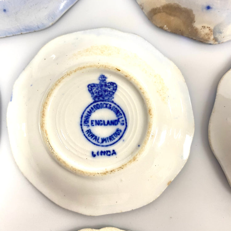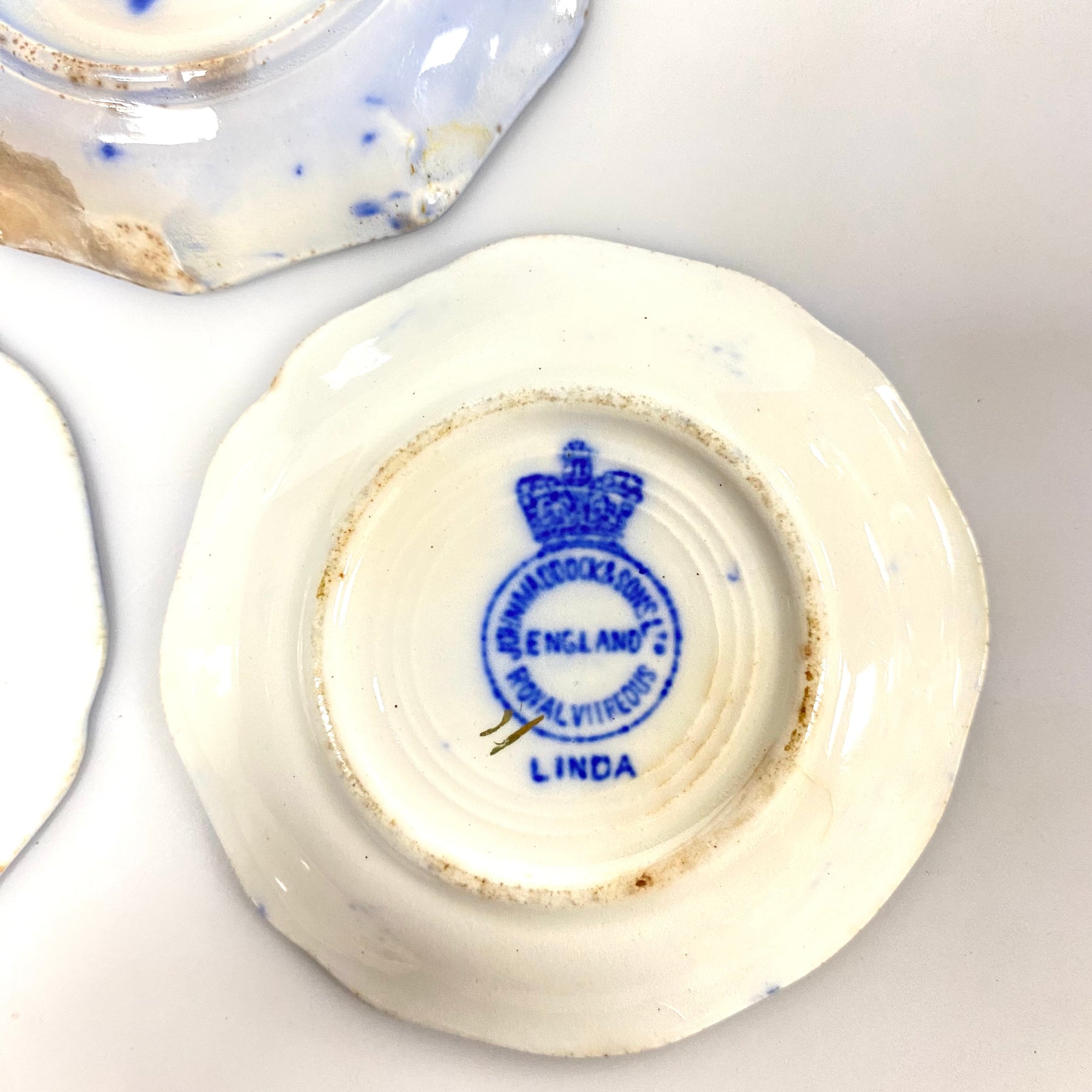 - The set includes multiple patterns, such as the "Verona" and "Waldorf" patterns by makers like Ridgways, Wood & Son, and New Wharf Pottery. 6pc sold together.