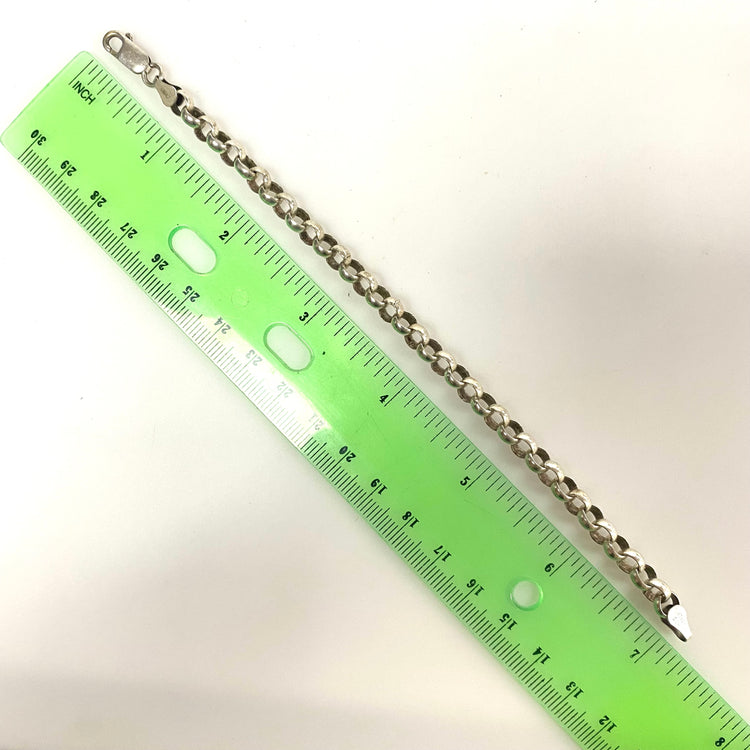v538 Vintage Sterling Silver 925 Italy Round Links Chain Bracelet 7" Long