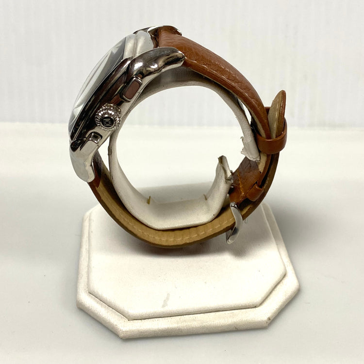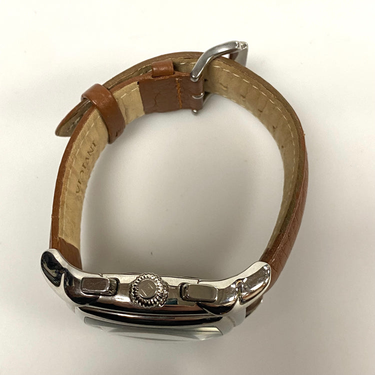 Dial: Brown, featuring Roman numeral hour markers and white accents.