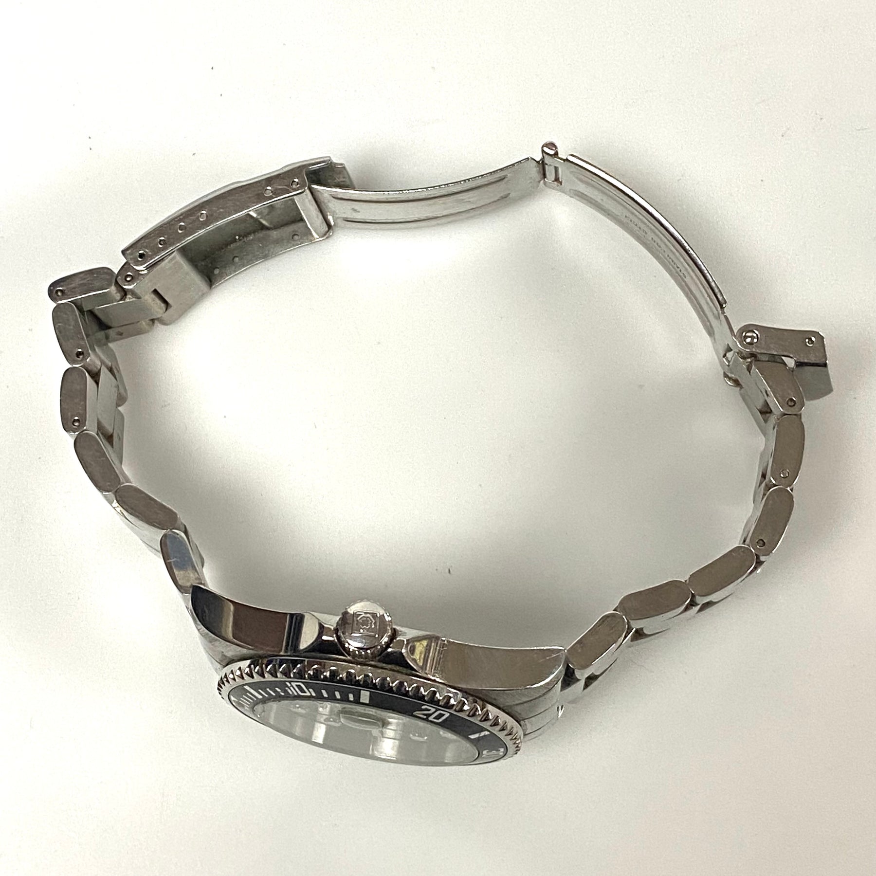 • Case & Dial: The watch has a 42mm diameter stainless steel case with a black dial and luminous hands and markers.