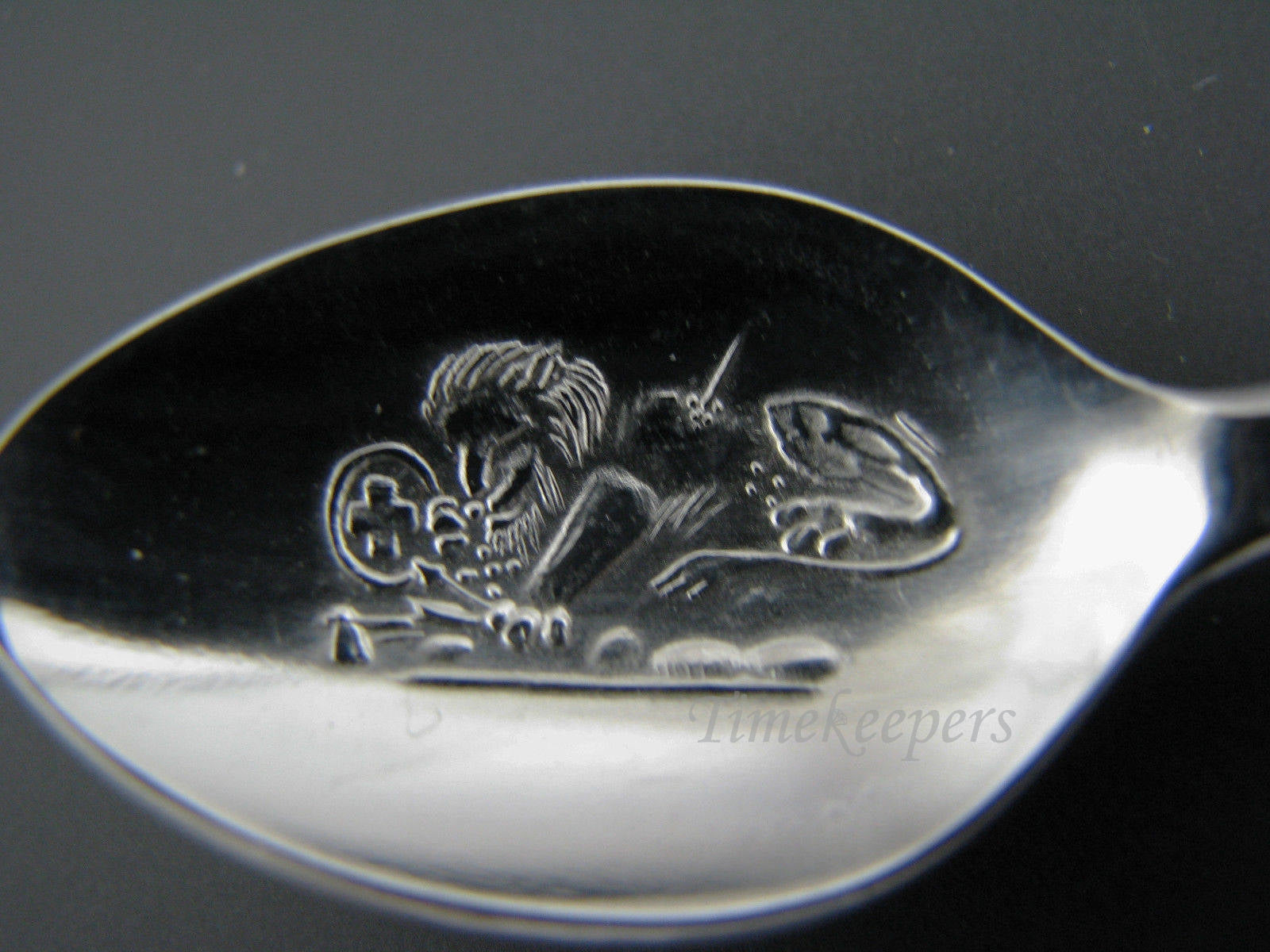 This is a very nice vintage collectible 4 1/4" souvenier spoon. The front features the Rolex crown, ROLEX, Bucherer & Lucerne. The back is marked Bucherer of Switzerland and CB. The bowl of the spoon features a recumbent lion with a cross in a circle and an axe in the bowl. It is in excellent used condition. There are two stories that go with these spoons one is that these spoons are given away with the purchase of a Rolex watch, the other is that major hotels in which the Bucherer stores are located gave out the silver plated Rolex spoons to hotel patrons. A marketing ploy by Bucherer to get, mostly, foreign tourists to take home a Rolex with them. The spoons are Rolex affiliated in that Rolex Geneva endorses the marketing effort by Bucherer, but Rolex money is not involved.